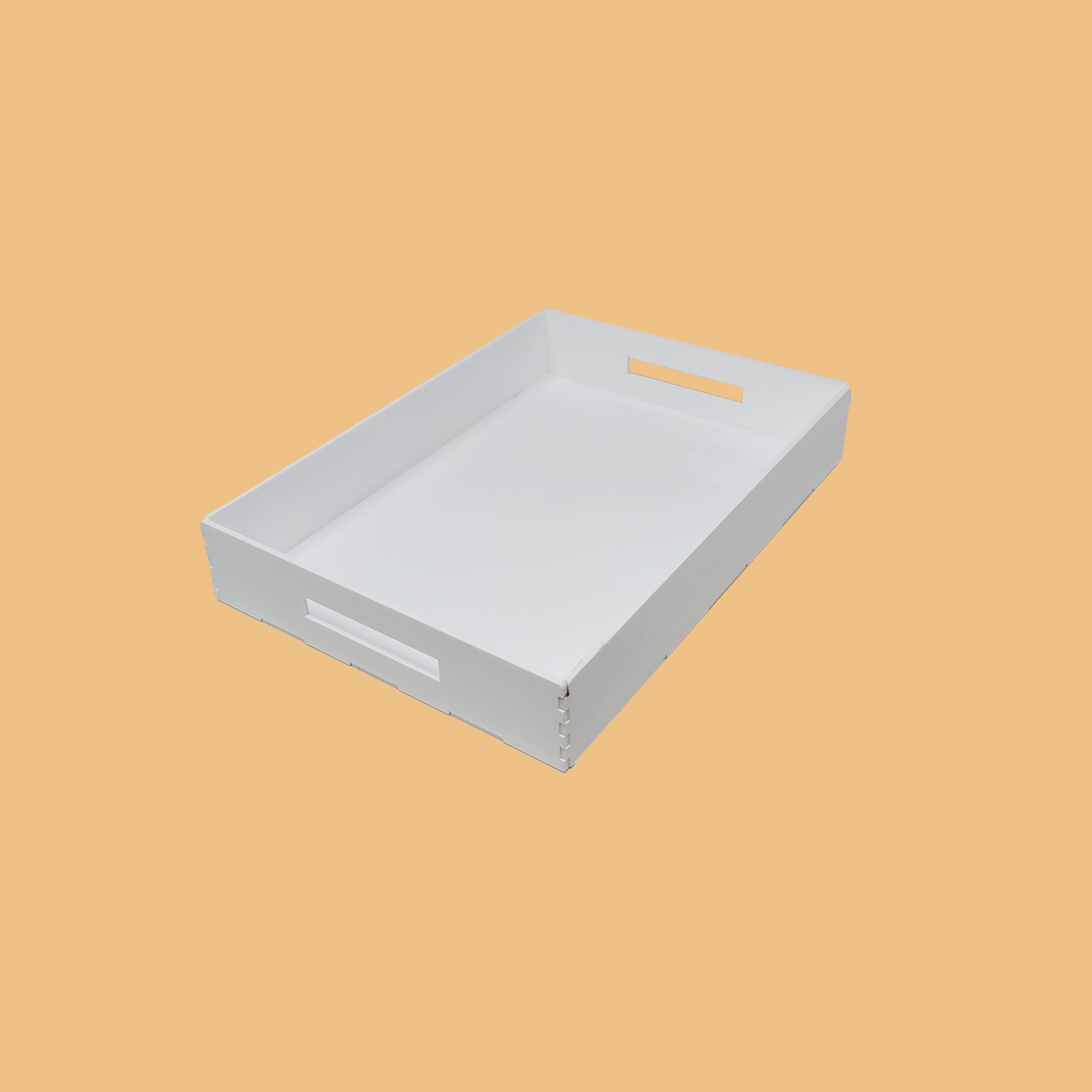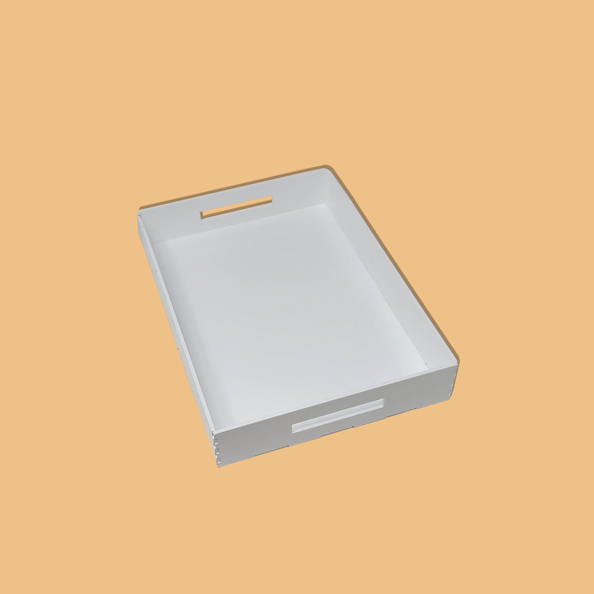 The organizer acrylic tray, made of stylish white acrylic, is perfect for keeping your workspace or tabletop organized. Its generous size can accommodate a variety of items, from office supplies like pens, paper clips, and notepads to personal accessories like jewelry or cosmetics. The raised edges prevent items from slipping off, providing a practical and organized storage solution.